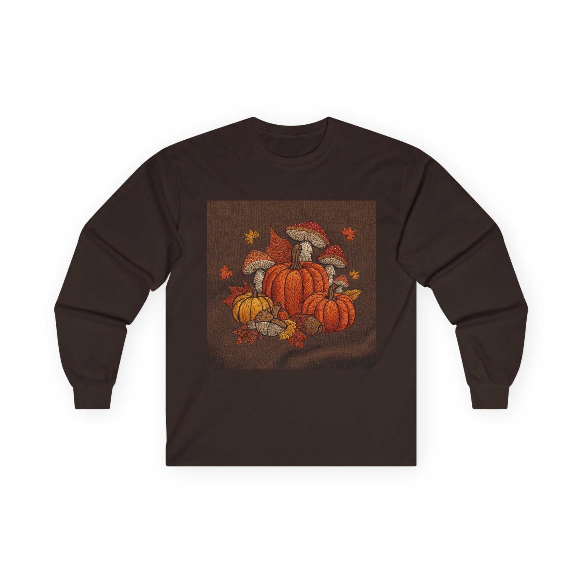 Fall Harvest Long Sleeve Tee, Pumpkin Shirt, Autumn Apparel, Thanksgiving Outfit, Cozy Top for Autumn Days